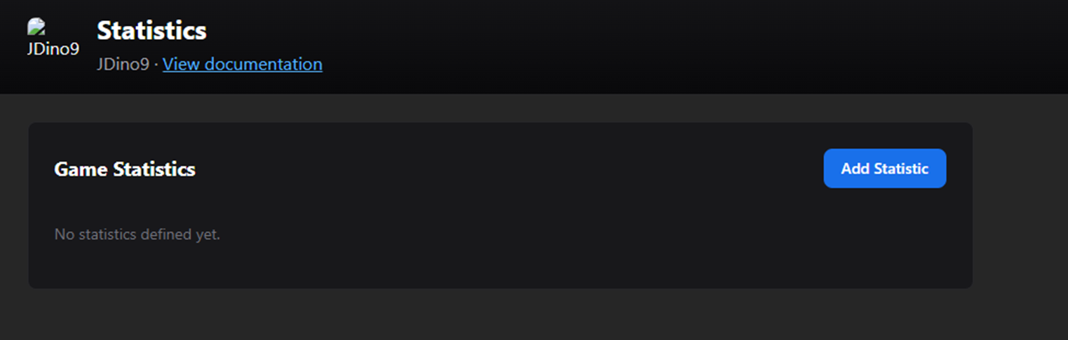 After you come up with your list of statistics, you need to set them up on the server. This can be done in the Developer Portal or by adding /statistics onto the URL for your game in your browser window.